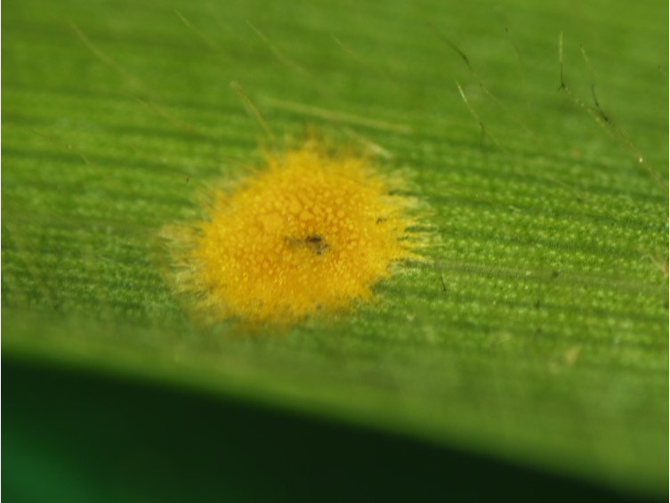 Stromata yellowish orange, flattened pulvinate, 2-3.5 mm diam, covered by