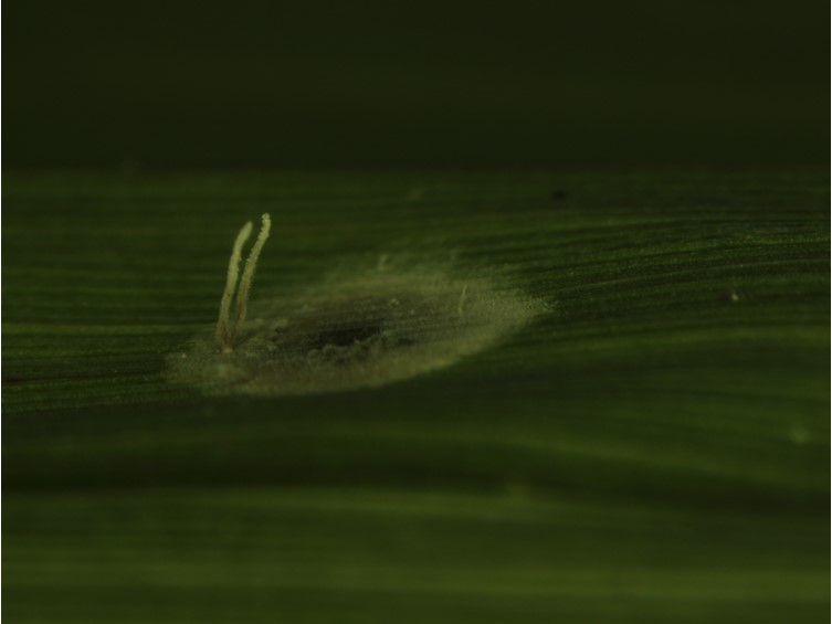 Stromata flat, pale brown, consisting of densely packed hyphae covering an area of 2-2.5 mm diam of undersides of leaves.