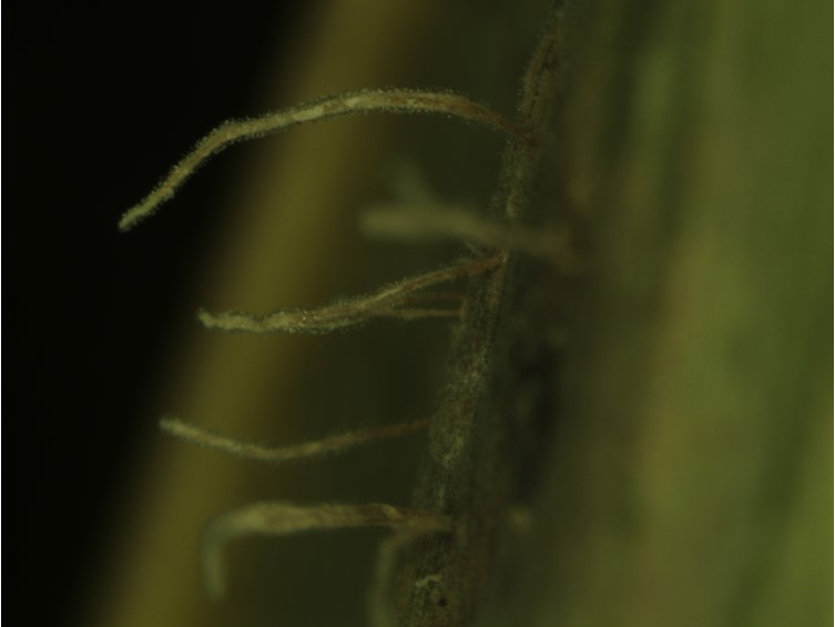 Synnemata formed on stromata consisting of a weft of hyphae, usually present in groups of 10, up to 1000 μm long, 100 μm wide, pale-brown at the base becoming light brown towards the tip.