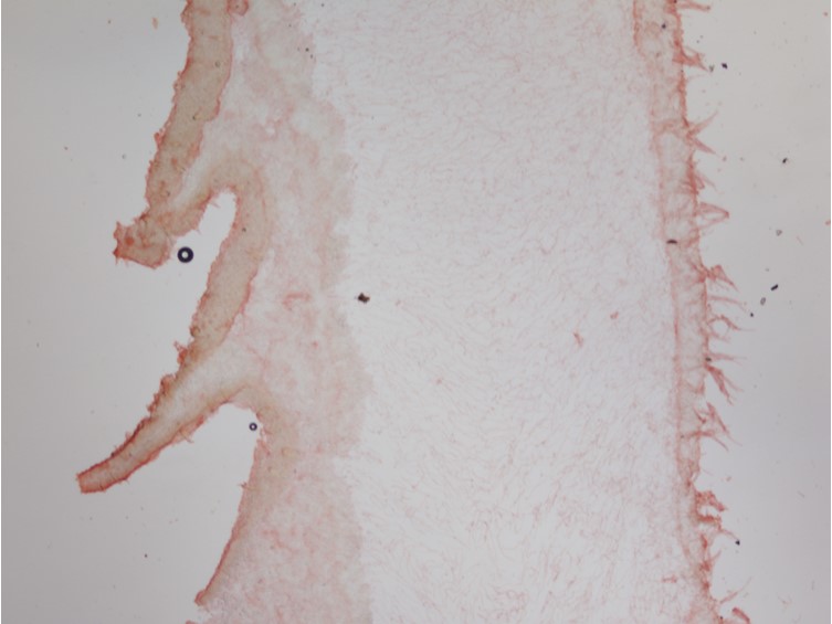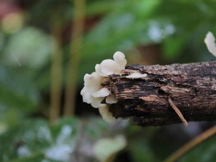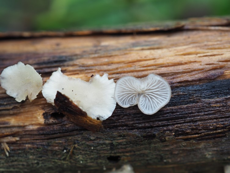 Basidiomata leathery, spatuliform, flabelliform, reniform, orbicular, laterally or dorsally attached to the substratum without stipes or pseudostipes, 5–30 mm broad × 8–20 mm high. Pileus surface white to yellowish white, greenish white, turning to moderate orange yellow when dried, paler towards margin, white woolly (under lens) dense near base, sparse elsewhere; nonhygrophanous, nonstriate, dry; with margin in rolled to incurved when young, becoming straight, entire to variously lobed or wavy. Lamellae white to yellowish white, turning to moderate orange yellow when dried, radiating from point of attachment, subdistant, unequal. Stipes or pseudostipes absent. Hymenophoral trama irregular, 30–70 µm thick, made up of hyaline, branched, 2.5–5 µm wide hyphae with clamp connection and with ampulliform swelling up to 17.5 µm wide and 2.5 µm thick. Tomentose or hispidulous layer 150–260 µm thick, composed of thin-walled, hyaline, up to 5.0 µm wide, with clamp connections, erected from the epicutis. Pileus trama subregular, 180–340 µm thick, composed of interwoven, gelatinized, thin-walled, hyaline, septate, branched, 2.0–5.0 µm wide hyphae with clamp connections and with ampulliform swelling up to 22.5 µm wide and 1.25 µm thick. Pileipellis 37.5–167.5 µm thick, consisting of an interrupted ixocutis of septate, thin-walled, hyaline, up to 5.0 µm wide hyphae with clamp connection. Pileocystidia absent. Gelatinous subpellis or Gelatinized zone 300–870 µm thick, compose of thin-walled, hyaline, septate, branched, 1.25–2.5 µm wide hyphae with clamp connection. Subhymenium pseudoparenchymatous 7.5–12.5 µm thick.