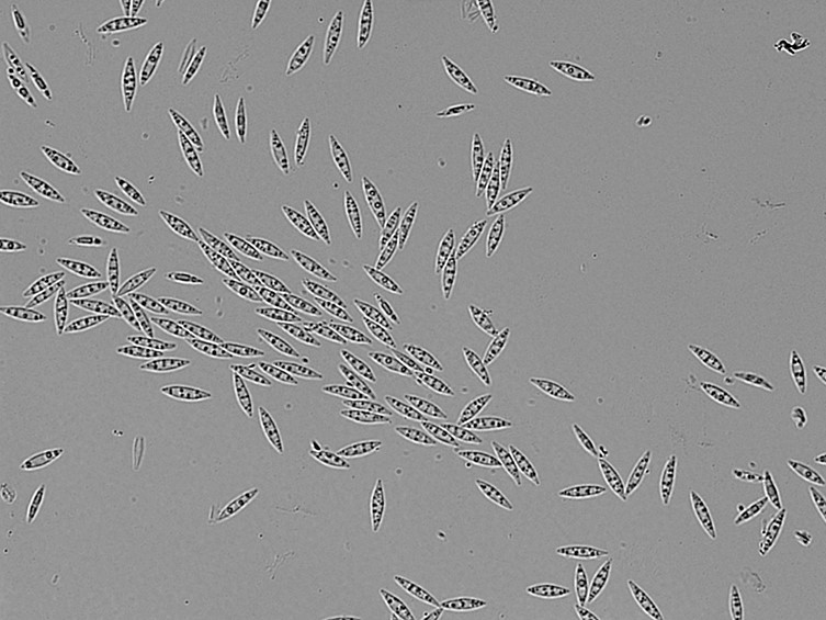 Conidia fusoid to narrowly fusiform, with acute ends, 12.5-15 × 2.5-3.8 mm.