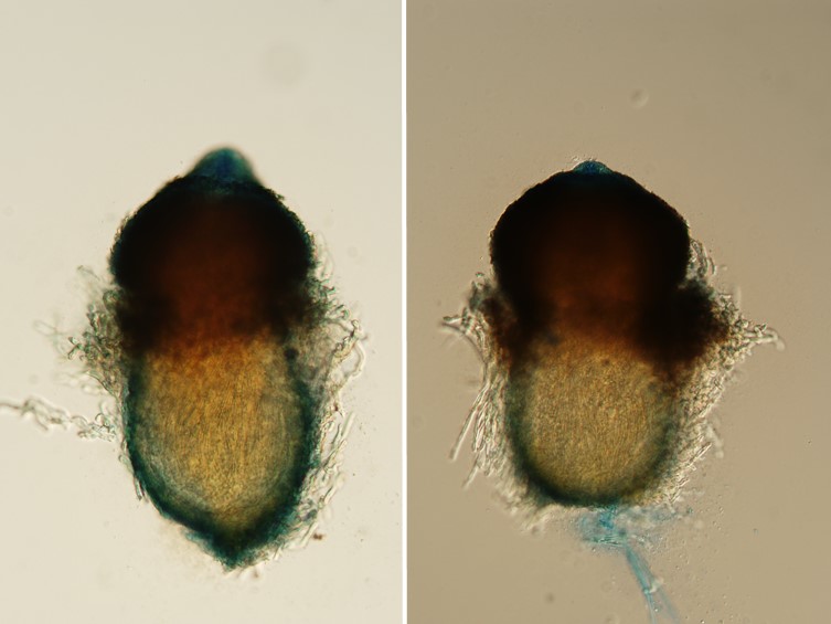 Perithecia crowded, immersed, 200–430 × 100–200 μm, elongate flask-shaped, ostioles slightly projecting, translucent dark-brown.