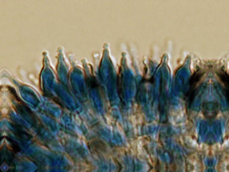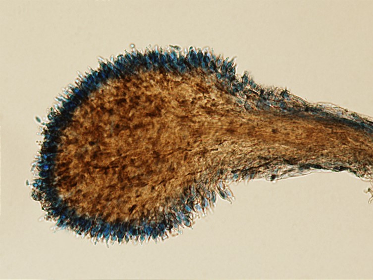 Phialides in a monolayer, crowded, usually single or occasionally two or three on lateral basal cells, smoothwalled, cylindrical, 3.5-6.5 × 1.5-2 μm, tapering to a long, thin, neck, 2-2.5 × 0.5 μm.