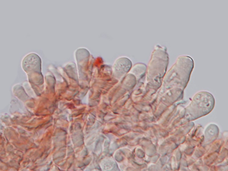 Basidia 25.0–37.5 × 7.5–12.5 μm, subclavate, 4-spored.