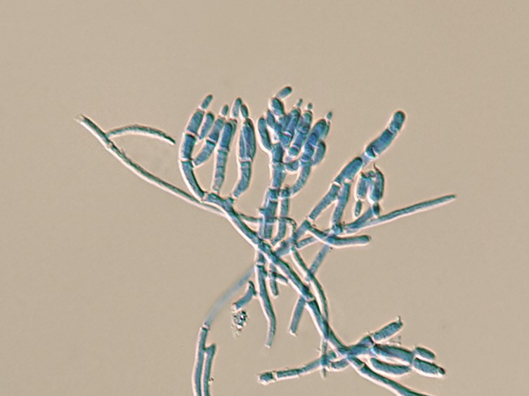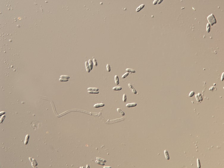 conidia. Conidia smooth-walled, parrot-green, ellipsoidal, occasionally ovoid, 3-5.5 × 2-2.5 μm.