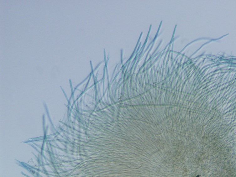 Asci cylindrical, 8-spored, up to 420 μm long, 5-6 μm wide, apical cap prominent, 3-4 × 4 μm.