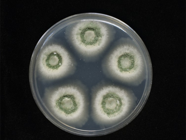 Colonies on PDA attaining a diam of 22–24 mm in 20 d, dense mycelium, floccose, slightly convex to the agar surface, white turning to parrot-green, powdery while sporulating. Sporulation starts at 7 d after inoculation, reverse tawny olive in the middle of colony and white cream at the margin. Conidiophores arising from aerial mycelium, erect, smooth-walled, cylindrical. Phialides smooth-walled, cylindrical with semi-papillate apices, 6–10 × 2–3 μm. Conidia smooth-walled, parrot-green, fusiform-elliptical, 5–8 × 1.5–2 μm.