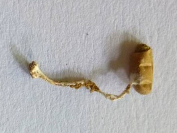 Stroma on Lepidoptera pupa cylindrical, solitary, simple, 10 mm long, 1-2 mm wide, white to cream. Rhizoids flexuous, arising from the pupa of Lepidoptera, ca 8 mm long under the ground. Fertile part terminal, discoid, ovoid, 2 mm long, 2 mm wide, white to creamy.