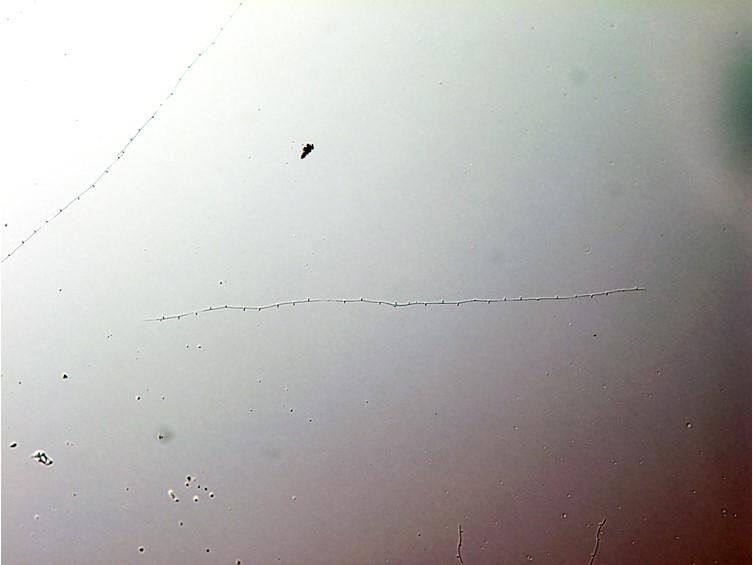 Ascospores hyaline, filiform, whole, multi-septate, 222.5-360 × 1 μm. Conidia cylindrical, 2.5-4 × 1 μm, seen as