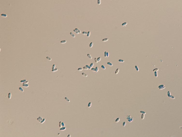 conidia. Conidia smooth-walled, parrot-green, ellipsoidal, occasionally ovoid, 3-5.5 × 2-2.5 μm.