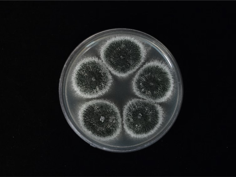 Colonies on PDA attaining a diam of 22 mm in 14 d, dark green, flat, entire edge, white border, dark green of colonies due to production of conidia. Sporulation starts at 5 d after inoculation, reverse uncoloured. Conidiophores terminating in branches, with 2–3 phialides per branch. Phialides cylindrical with semipapillate apices, 5–10 × 2–3 μm. Conidia smooth-walled, parrot-green, ellipsoidal to cylindrical with rounded apices, 5–10 × 2–3 μm.