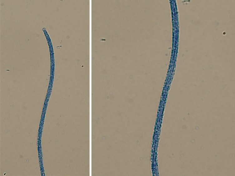 Ascospores filiform, hyaline, without septations and not fragmenting into part-spores, 400-500 × 1-1.5 μm.