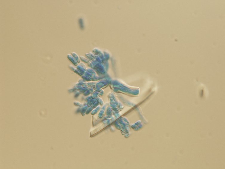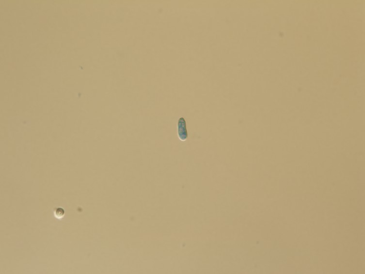 Conidia aseptate, smooth-walled, cylindrical, ellipsoidal, usually slightly curved or allantoid, 6-11 × 3-5 μm.