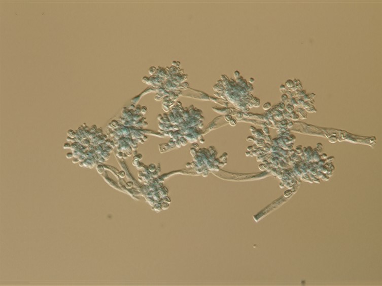 Phialides smooth-walled, globose to subglobose 2.5-3 × 3-5 μm. Conidia smooth-walled, olive-grey, subglobose, occasionally ovoid, 3-4 × 2-3 μm.