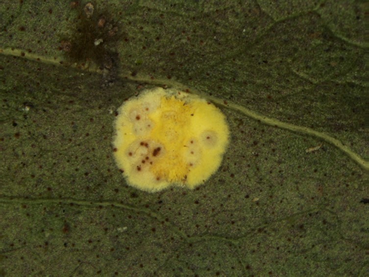 Sexual morph: stroma flat to umbonate, globose to subglobose, 2.5-4.5 mm in diam, pale greenish yellow to brilliant greenish yellow.
