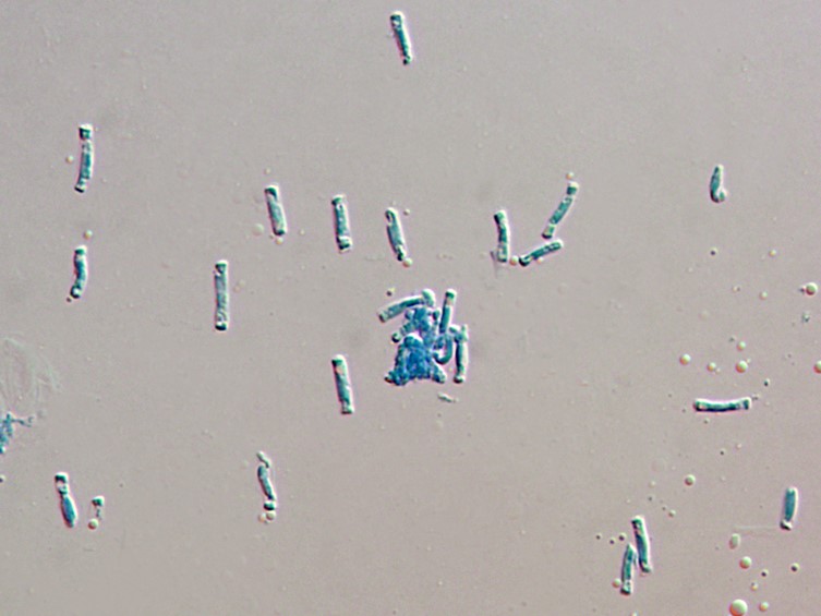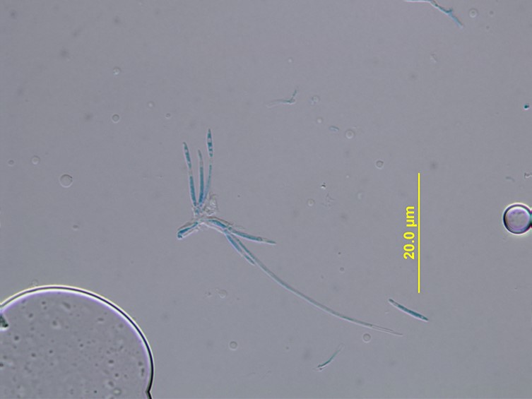 Phialides hyaline, cylindrical, 10-22 × 1.5 μm.