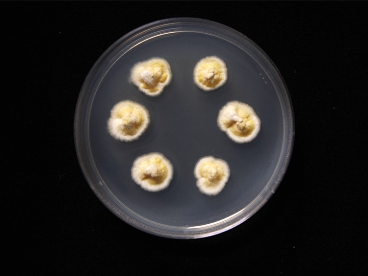 Colonies on PDA compact, pulvinate, with wrinkled surface, attaining a diam of 8.5–11 mm in 2 wk, white, pale yellow green conidial masses. Colony reverse moderate yellow, pale yellow in the margins.