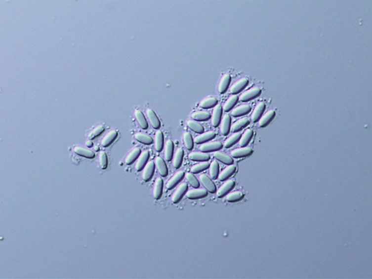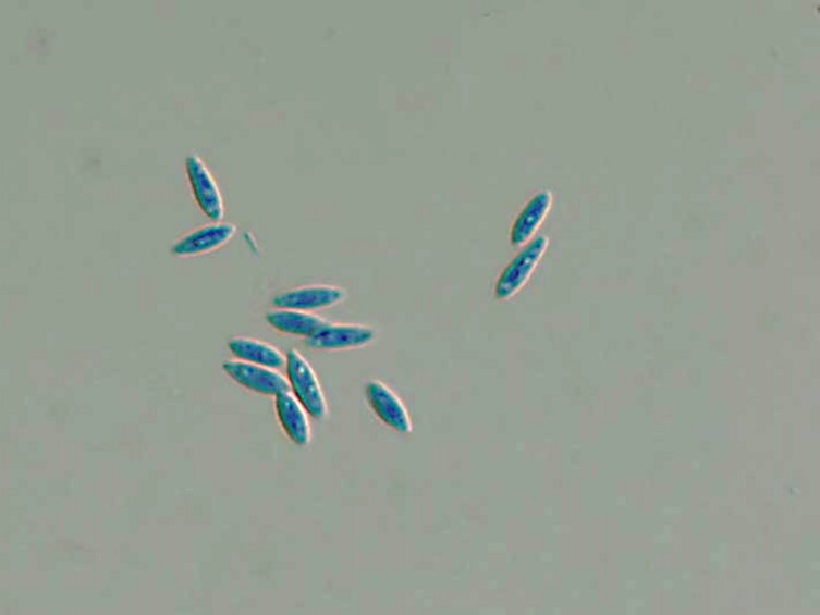 Asci cylindrical, 175 × 10-12 µm wide. Ascospores divide into part-spores, 7.5-10 × 2-3 µm, cylindrical oblong-oval, end round.