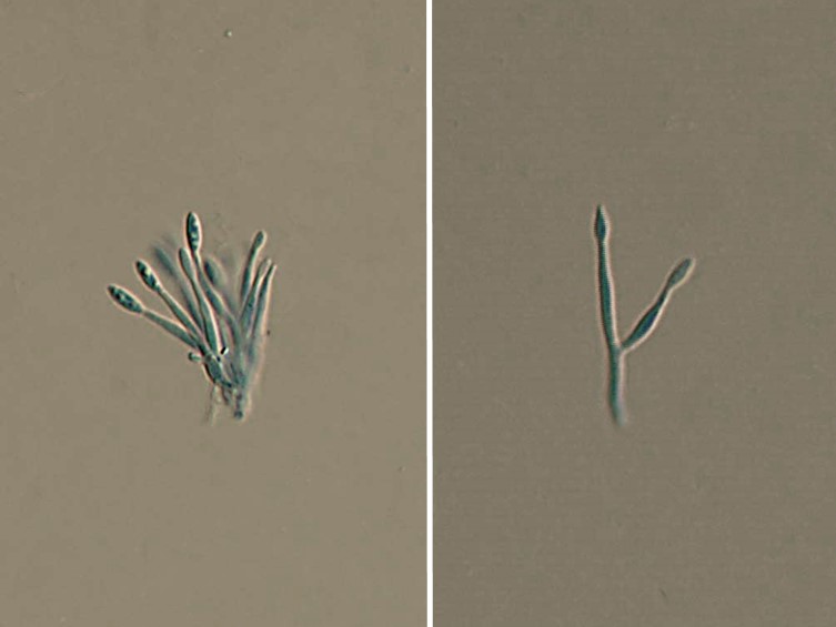 Phialides slender, up to 17.5 × 1.5-2 µm. Conidia hyaline, narrow, fusoid, ends tapering, 7-10 × 2 µm. The conidia of Thai specimens were smaller than those described by Petch (1921).