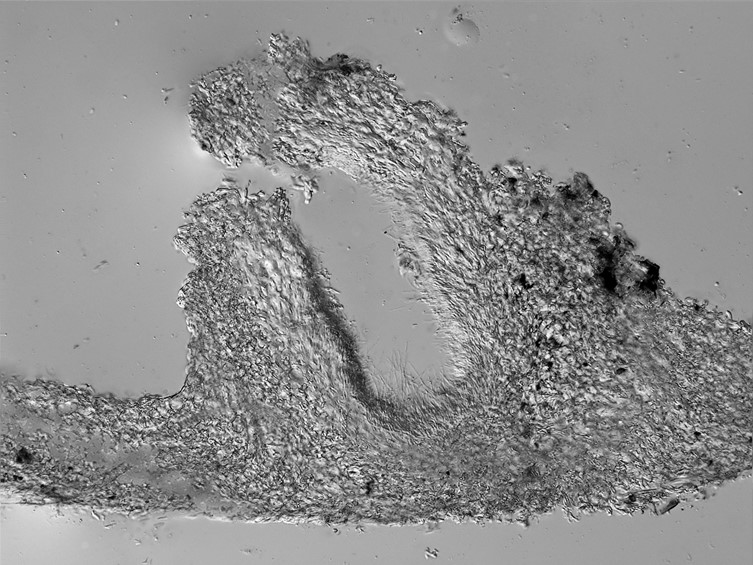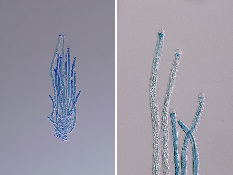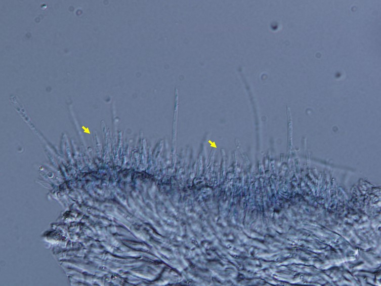 Asci hyaline, cylindrical, 130-185 × 5-7 μm. Asci-caps hemispherical, 4-5 × 5-7 μm.