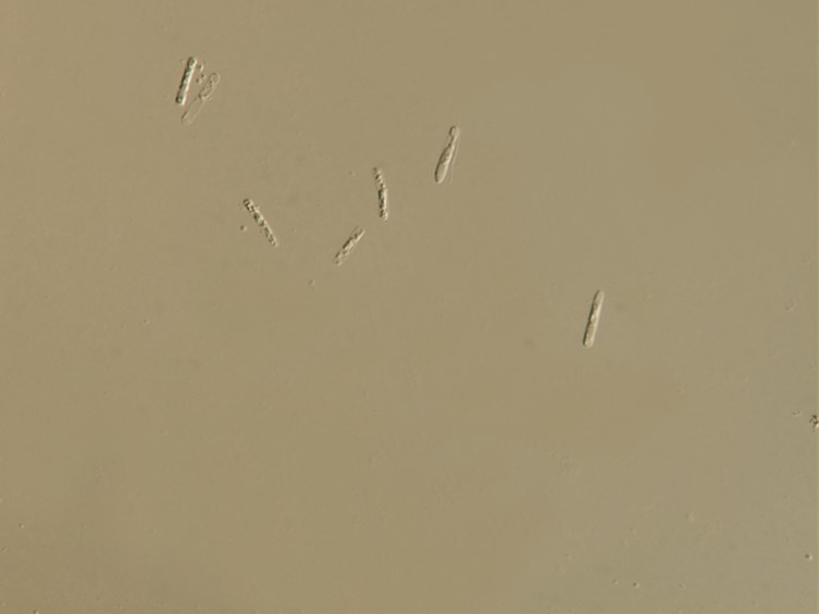 Conidia hyaline, fusiform, 7-10 × 1-2 μm. Paraphyses present, hyaline, filiform, up to 57 μm long, 1-1.5 μm wide.