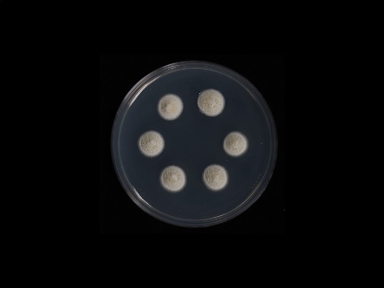 Colonies on PDA compact, convex to pulvinate, flat at the margins, attaining a diam of 8–9 mm in 2 wk, white, yellowish white conidial masses.