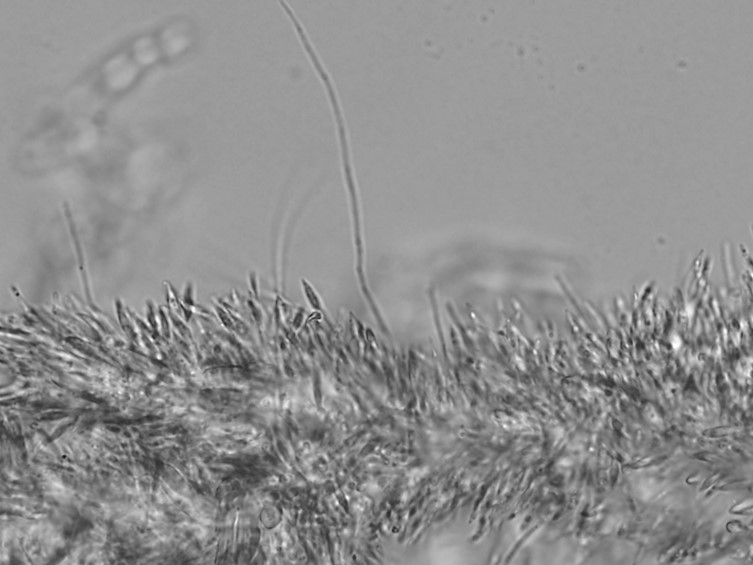 Paraphyses present, linear, filiform, up to 110 μm long; 1-2 μm wide. The