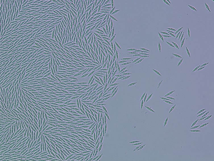Conidiogenous cells cylindrical, up to 23 μm long, 1-2 μm wide. Conidia fusoid, 9-12.5 × 1.5-2.5 μm.
