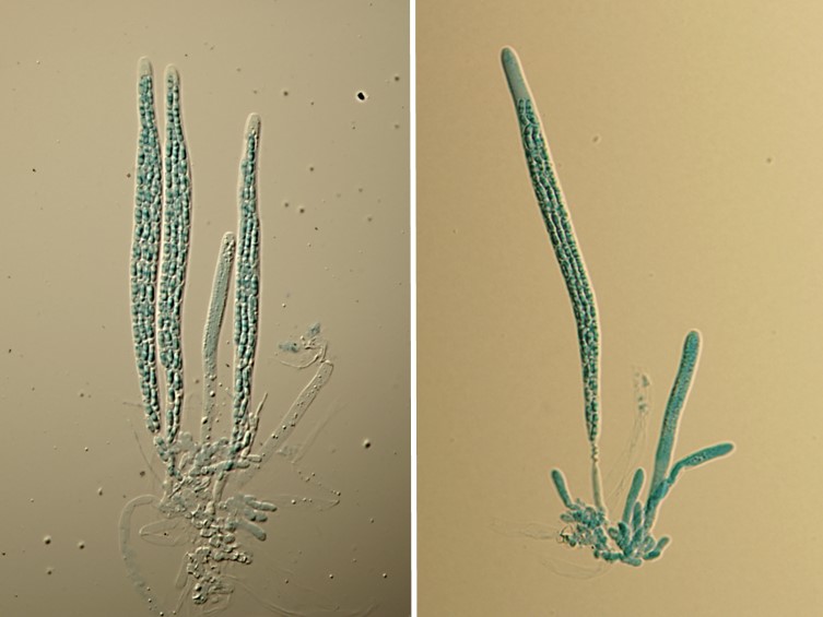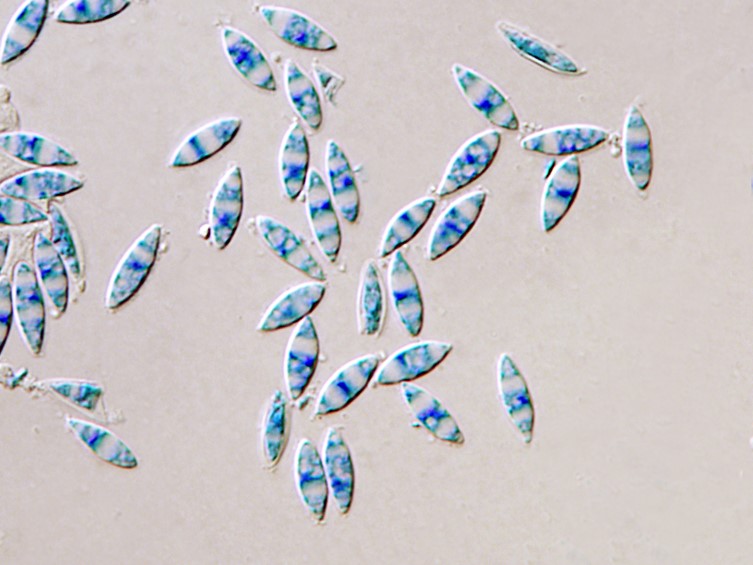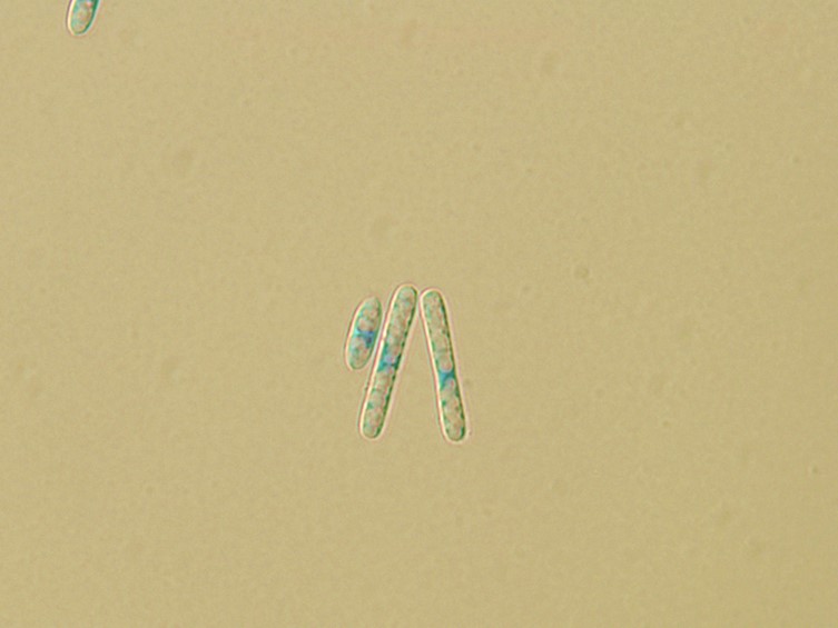 Ascospores divide into part-spores, cylindrical, ends tapering 10-12.5 × 1.5-2 µm. Asexual morph: stromata hemispherical.