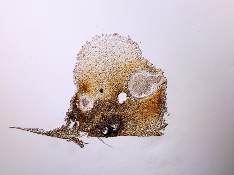 Perithecia scattered, slightly projecting, ostioles red brown, flask-shaped, ca 400 µm deep, 125-150 µm diam.