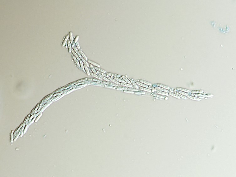 Part ascospores cylindrical with rounded ends, 8-11 × 1.5-2 μm.