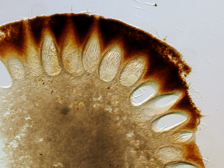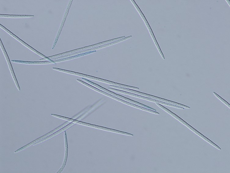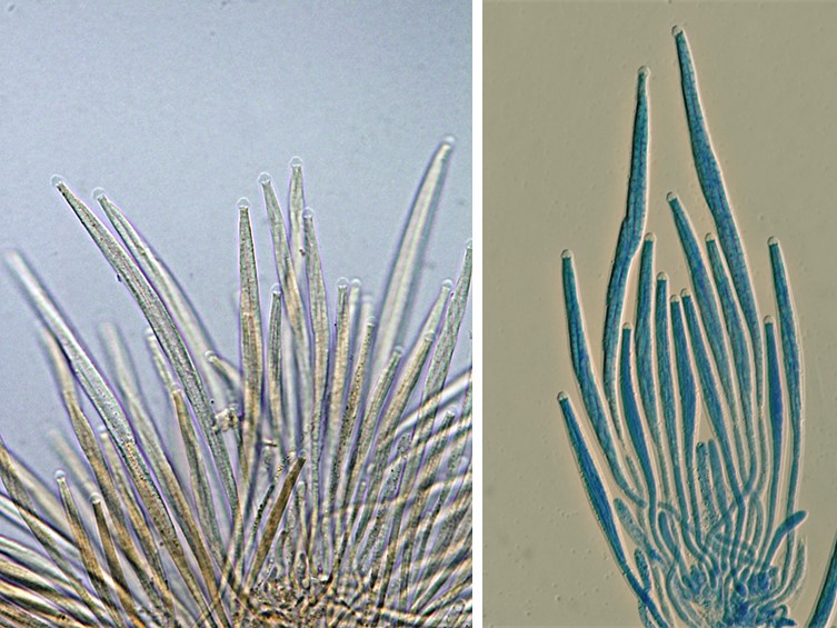 Asci cylindrical, 8-spored, 105-245 × 7-10 μm with caps 4-5 μm thick.