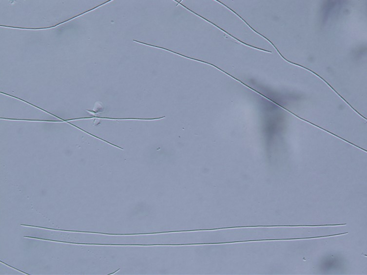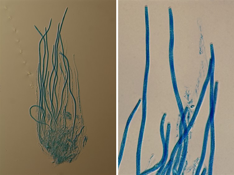 Asci cylindrical, 8-spored, 210-400 × 2-5 μm, apical cap prominent, 2 × 2.5-3 μm.