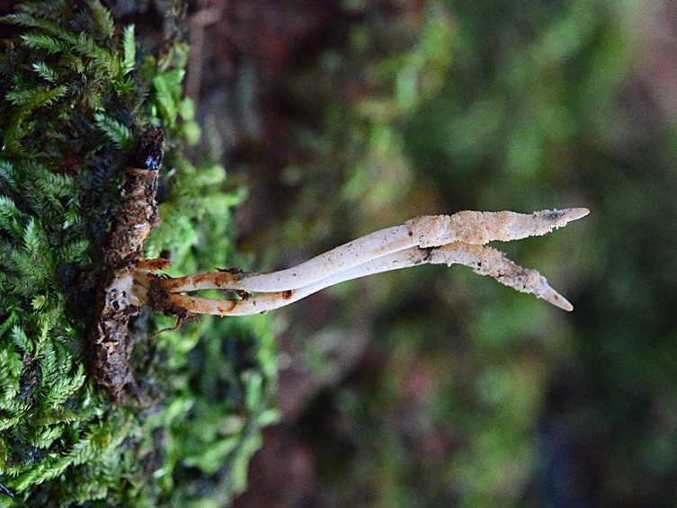 Stromata solitary or several, cylindrical, gradually tapering toward the apex, yellowish white, arising from head, thorax and abdomen of Coleoptera larvae, 30–60 mm long. Stipes cylindrical, smooth, white to white cream, 0.5–2 mm wide.