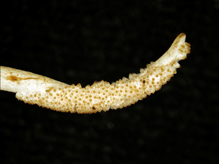 Fertile parts developing at middle to upper region of stipes, occasionally produced on one side of surface of stipes, light yellow.