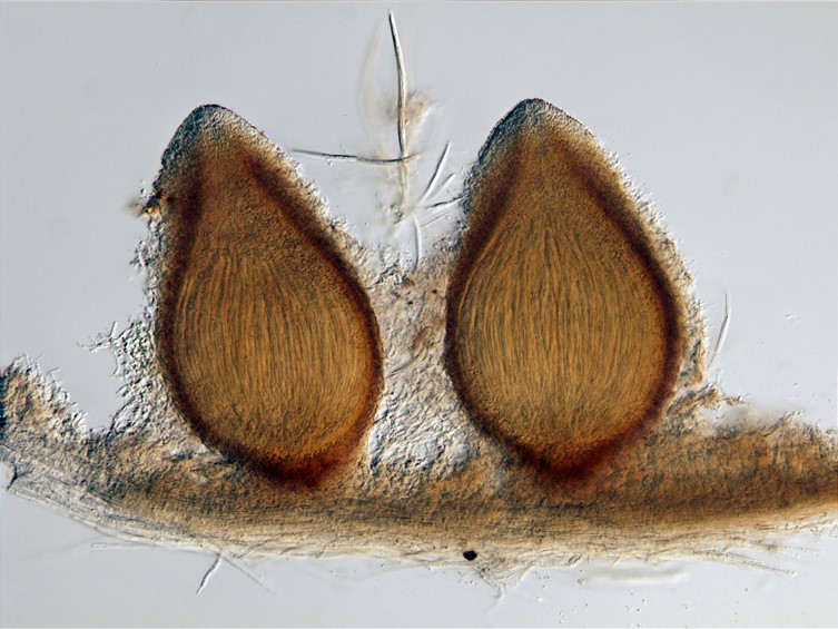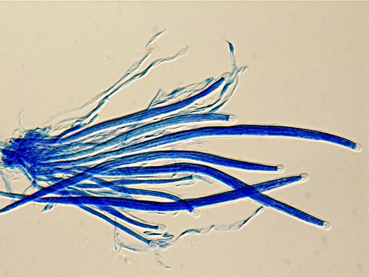 Asci cylindrical, 120–250 × 4–8 μm with asci caps, 2–3 × 3.5–4 μm.