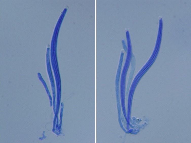 Asci 8-spored, filiform, 92.5-175 × 5-6.5 µm with cap, 2 × 2 µm.