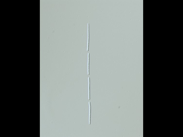 Ascospores smooth, filiform, hyaline, 3-septate, 110–165 μm long, breaking easily into four partspores, 32–45 × 2–2.5 μm.