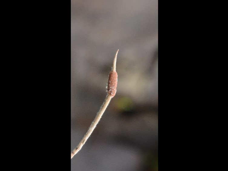 Fertile parts distinctly subterminal with asexual morph at the apex. Ascomata subterminal, cylindrical, moderate reddish brown to brownish orange, crowded