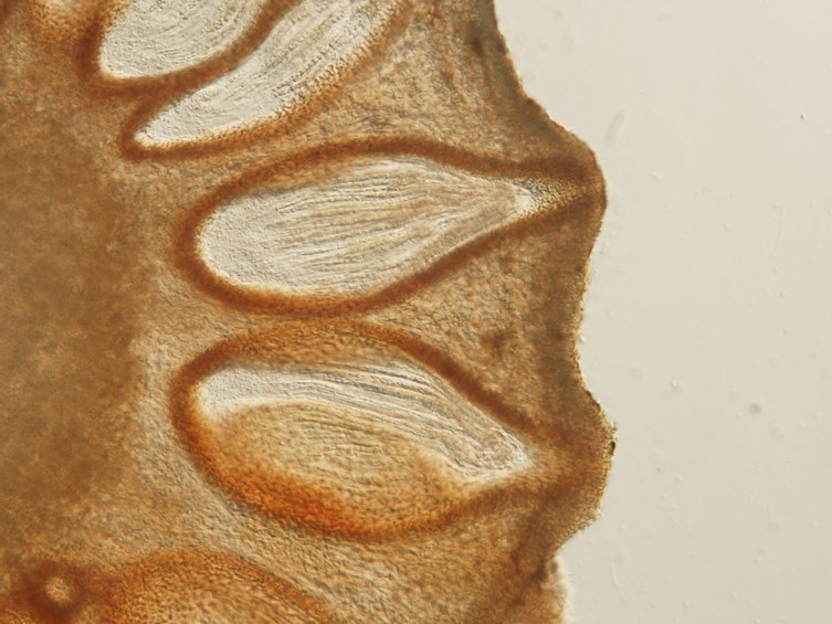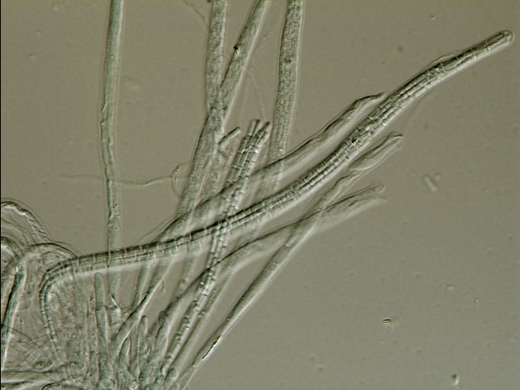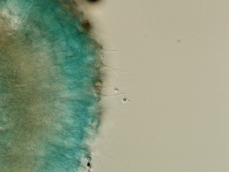 Asci cylindrical, 125–200 × 5–8 μm with asci caps 1.5–2 × 5 μm.