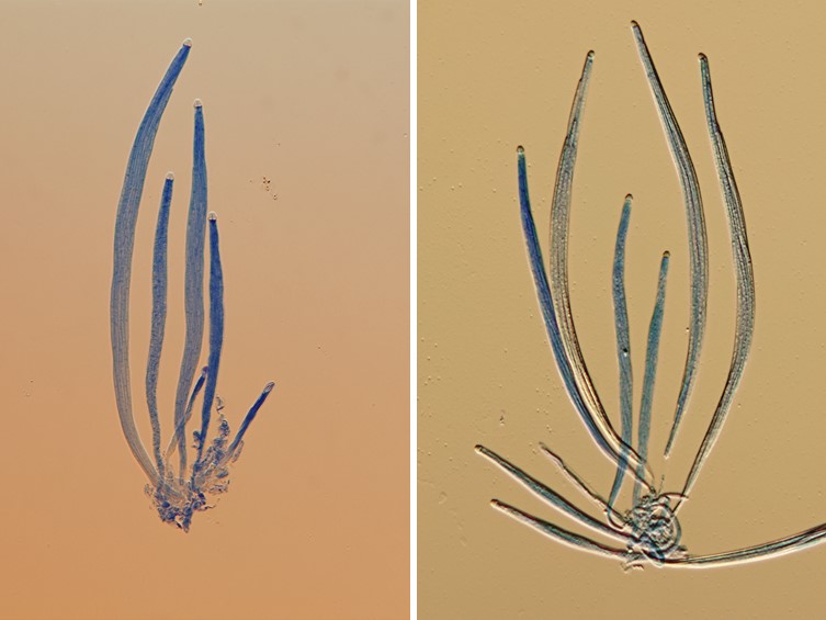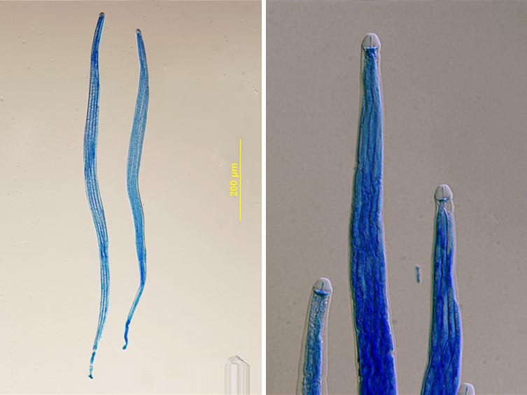 Asci hyaline, cylindrical, 8-spores, 250-320 × 10-15 μm, with thickened apical cap, 6-7 μm in diam.