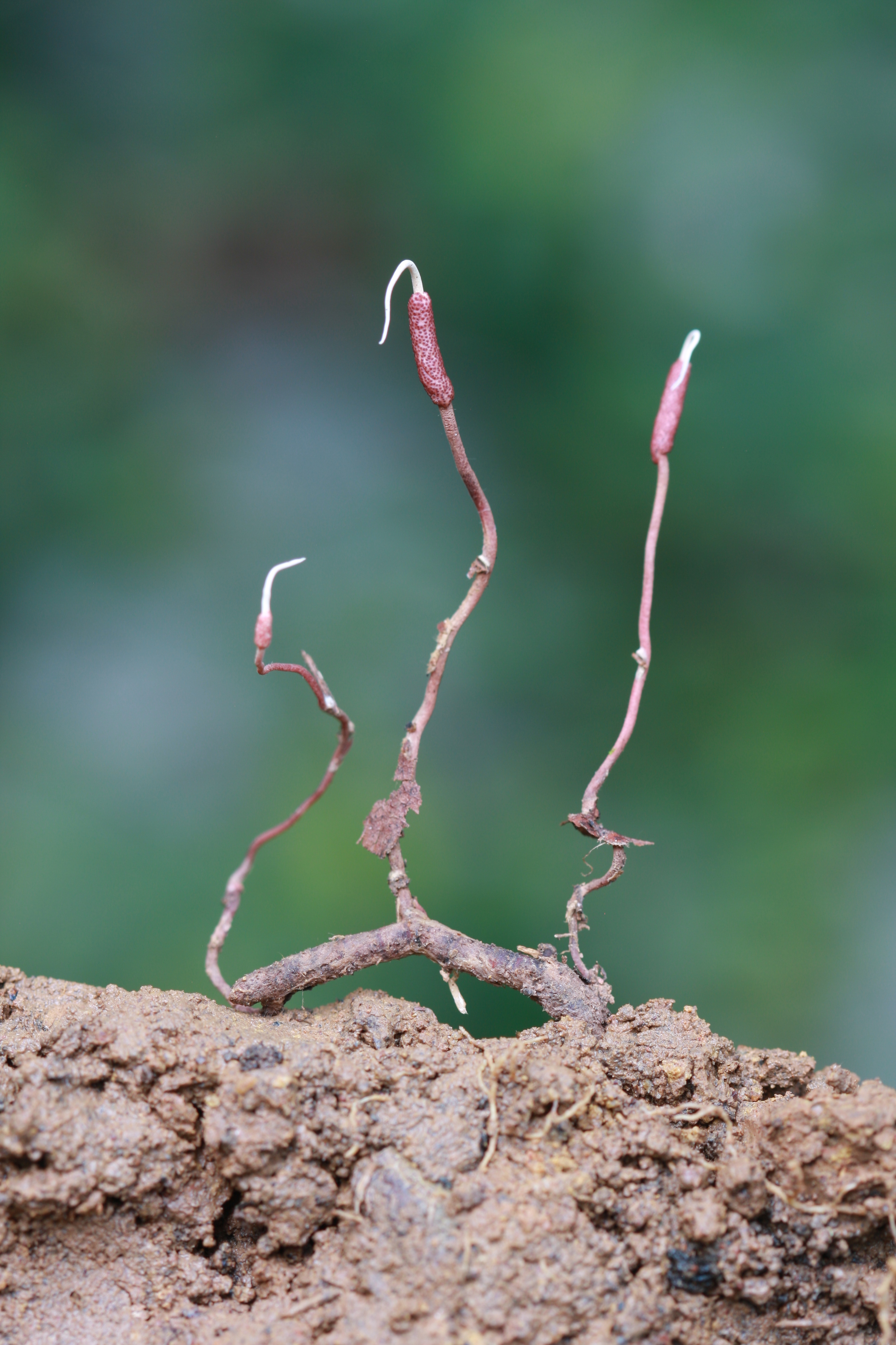 Stroma usually solitary, rarely up to 3, simple, 25–90 mm long. Stipe simple, cylindrical, base reddish-brown, head distinct, subterminal, cinnamon with brown dots. The fertile head was distinctly sub-terminal with anamorph state at apex.