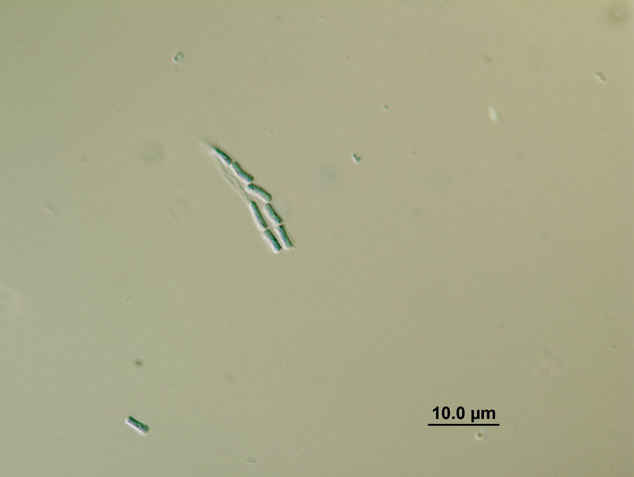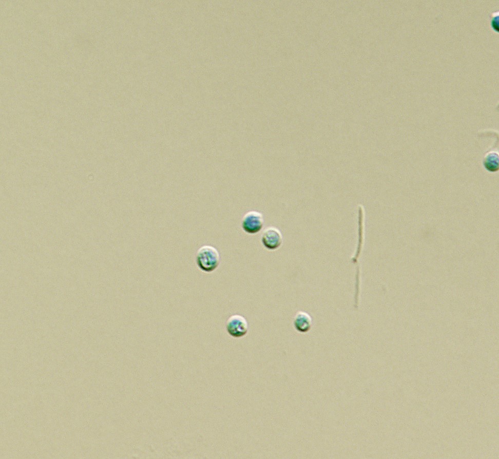 Conidia hyaline, smooth, spherical, 1.5–2.5 μm diam, enveloped by a mucous sheath.