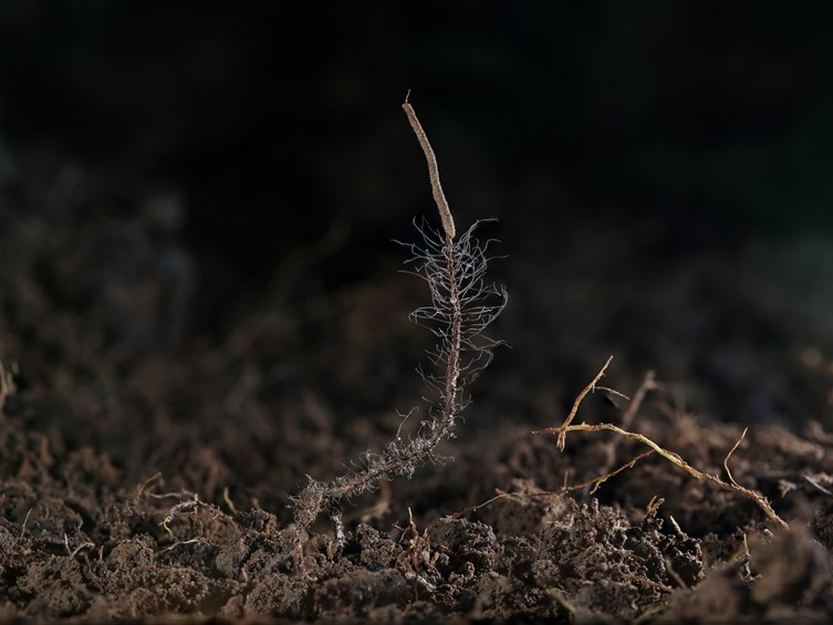 Stromata solitary, greyish reddish brown to moderate brown, 80–100 mm long. Stipe slender, slightly curved, 0.8–1.2 mm wide. Rhizoids flexuous, 3–4 cm long buried under the ground, arising from head of larva of Meracantha sp. Ascomata on upper part of the stipe, cylindrical, strong yellowish brown, densely packed