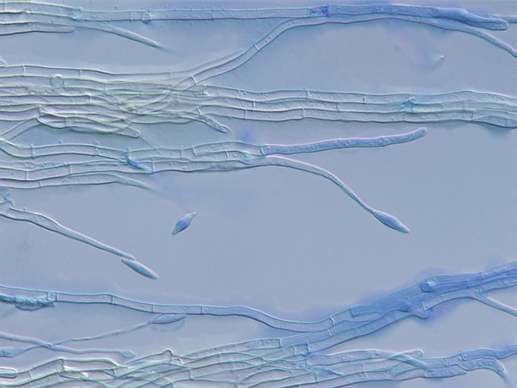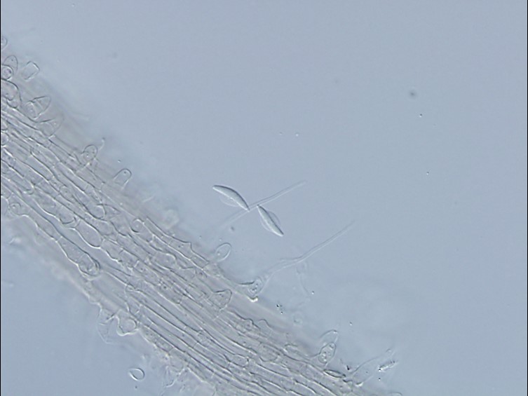 Conidia hyaline, smooth-walled, fusiform, 9–13 × 2–4 μm, a mucous sheath observed in mature conidia.