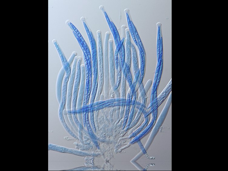 Asci 8–spored, cylindrical, 140–227 × 7–15 μm with ascus caps, 3.5–5 × 6–8 μm.