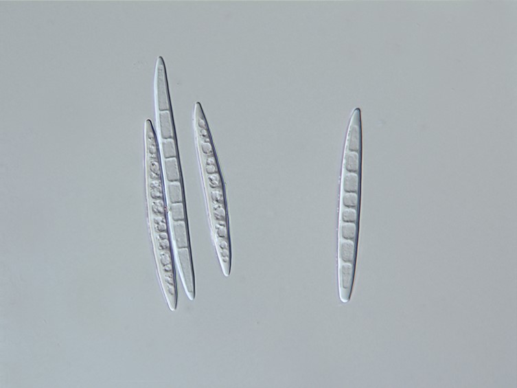 Ascospores whole, cylindrical with pointed ends, 35–80 × 5–6.5 μm, multi-septate, septa 5–19 μm long.