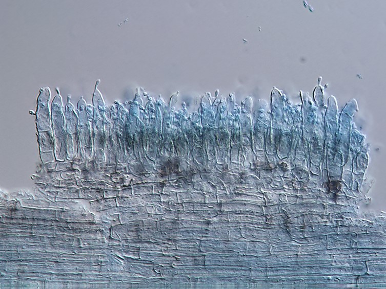 Phialides arising from the hyphae along the terminal part of the stroma, 5–17 × 4–6 μm.