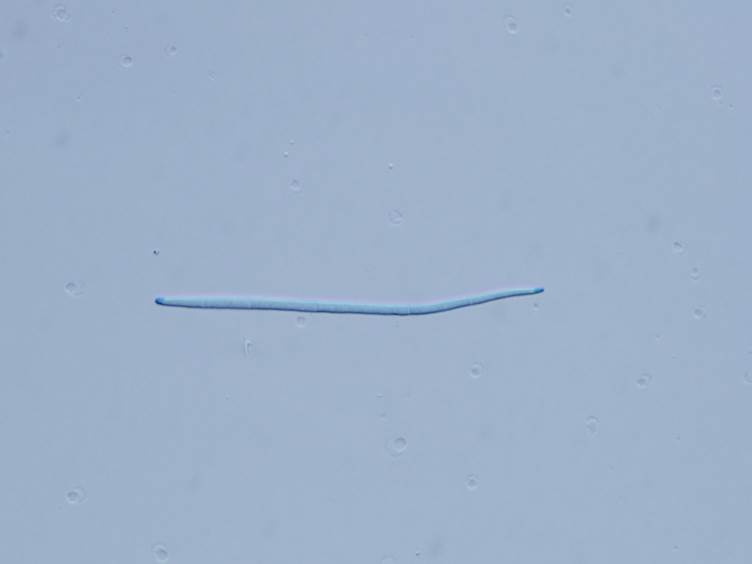 Asci hyaline, cylindrical, 8-spored, 150-190 × 5-8 μm. Ascospores hyaline, cylindrical to vermiform, remaining whole after discharge with distinct septation, 120-150 × 2-2.5 μm.