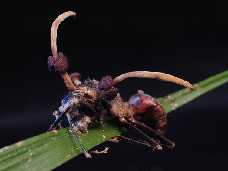Luangsa-ard JJ, Ridkaew R, Tasanathai K, et al. (2011). Ophiocordyceps halabalaensis: a new species of Ophiocordyceps pathogenic to Camponotus gigas in Hala Bala Wildlife Sanctuary, Southern Thailand. Fungal Biology 115: 608–614.